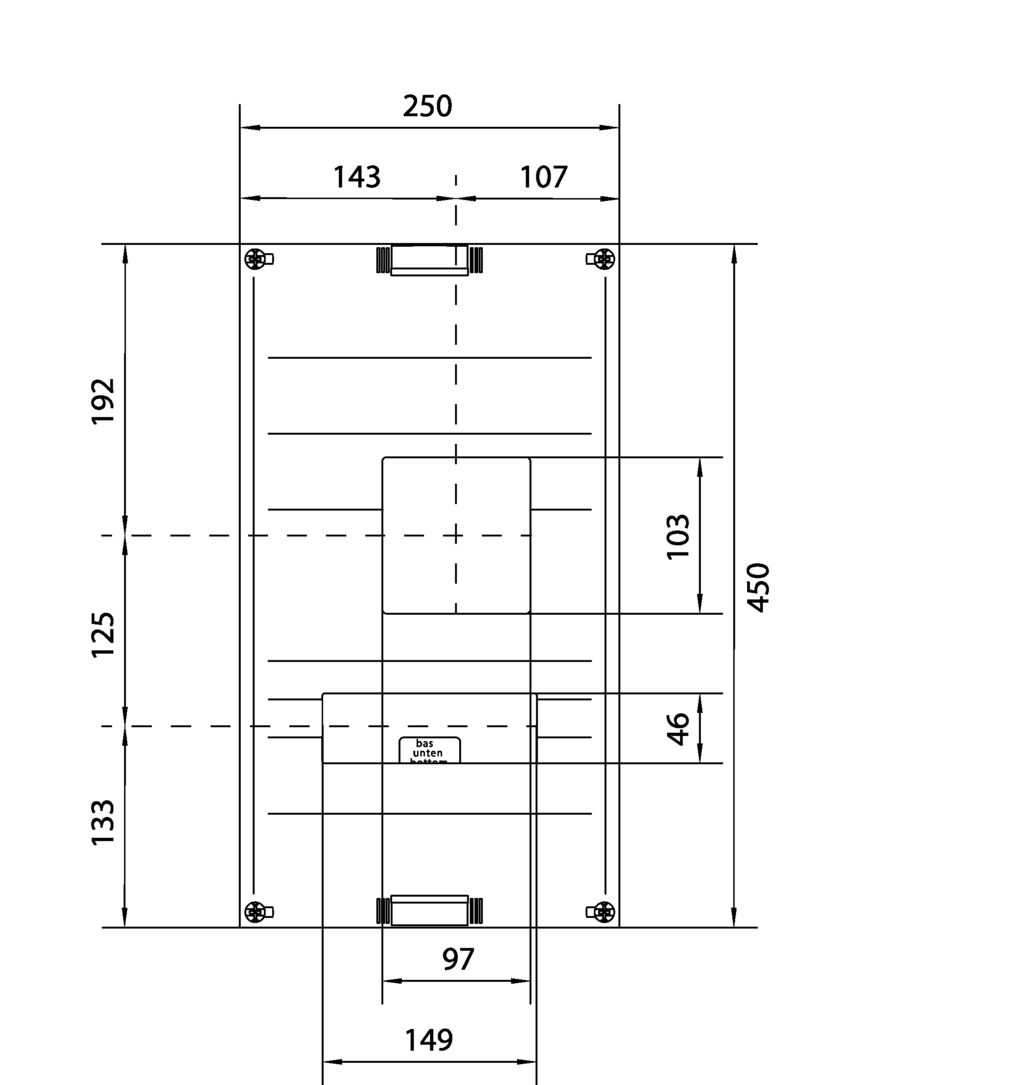 Baustein, universN, 450x250mm, für Leistungsschalter H3+ P250, mit FI