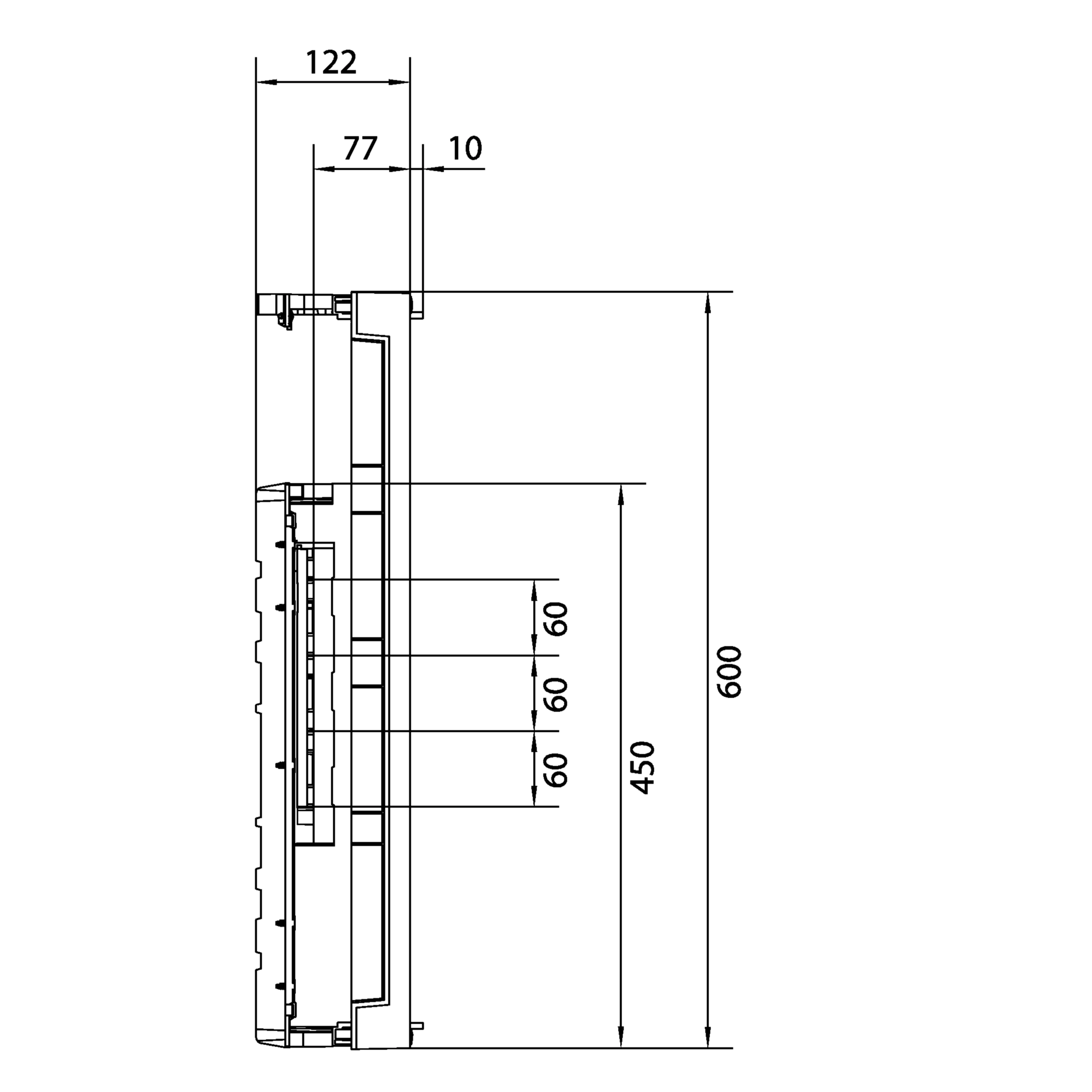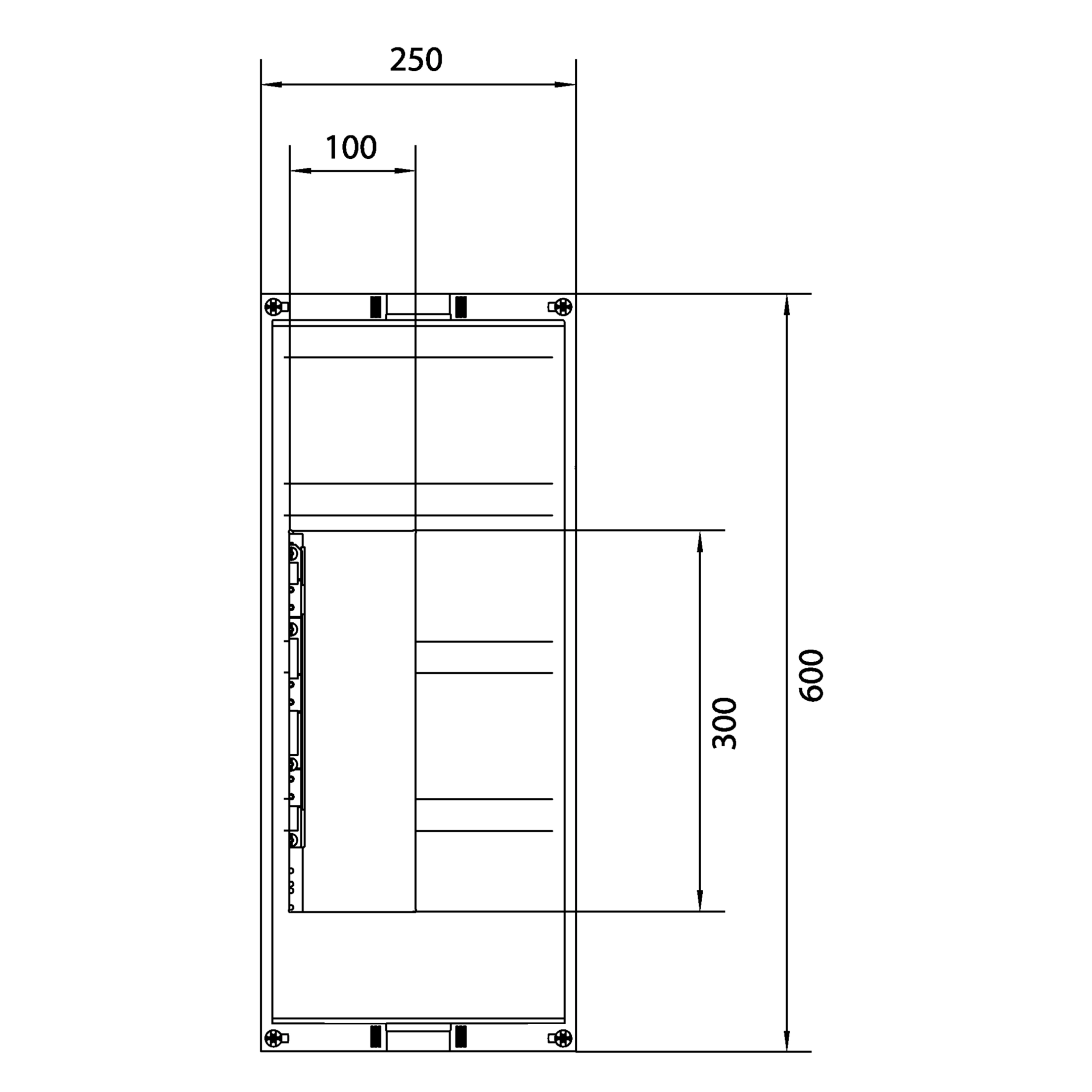 Baustein, universN, 600x250mm, für 4 NH00-Leisten auf Sammelschienensystem 60mm