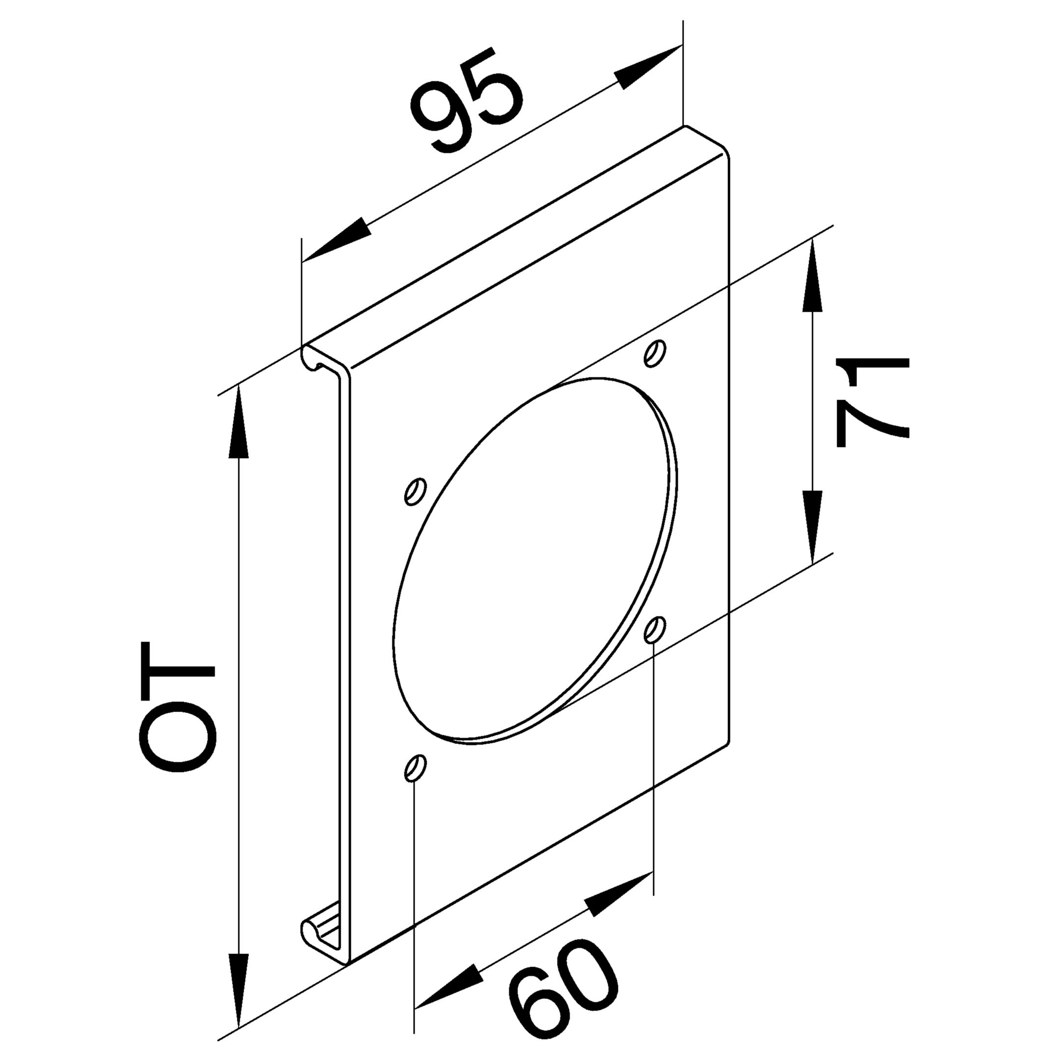 Blende CEE-Steckdose 60er Befestigungsspur PVC zu FB Oberteil 150mm verkehrsweiß
