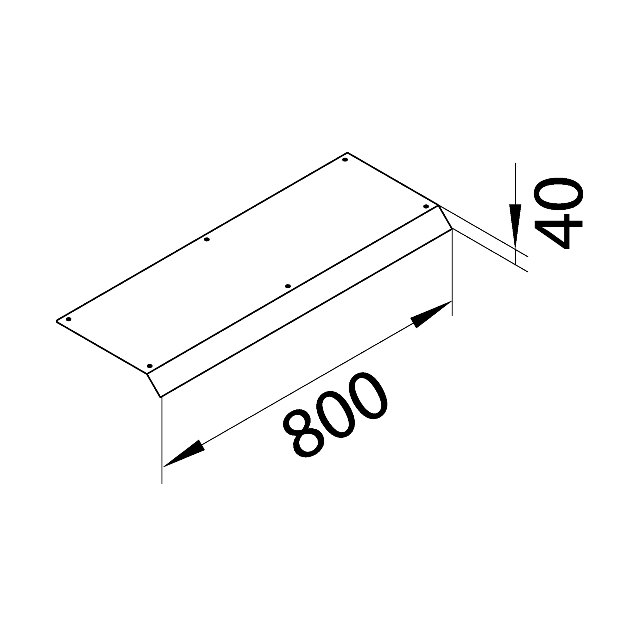 Blinddeckel 1-seitig Länge 800mm 45° aus Stahlblech zu Aufbodenkanal AK 250x40mm