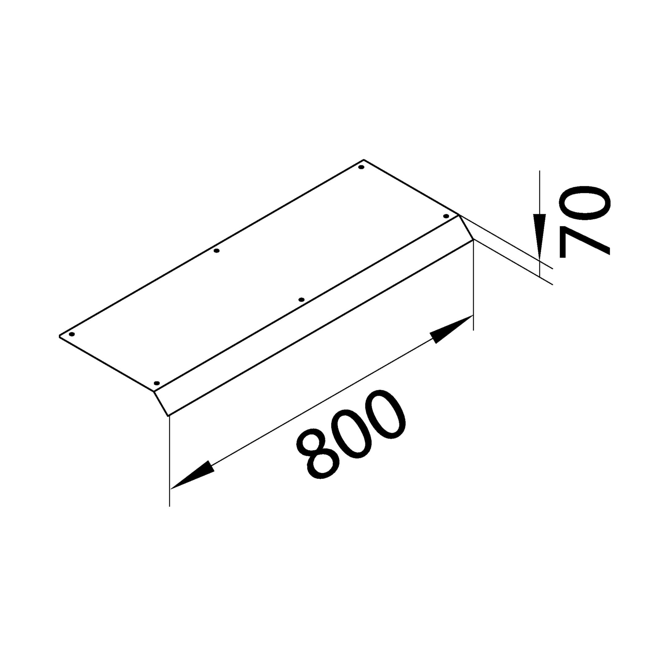 Blinddeckel 1-seitig Länge 800mm 45° aus Stahlblech zu Aufbodenkanal AK 400x70mm