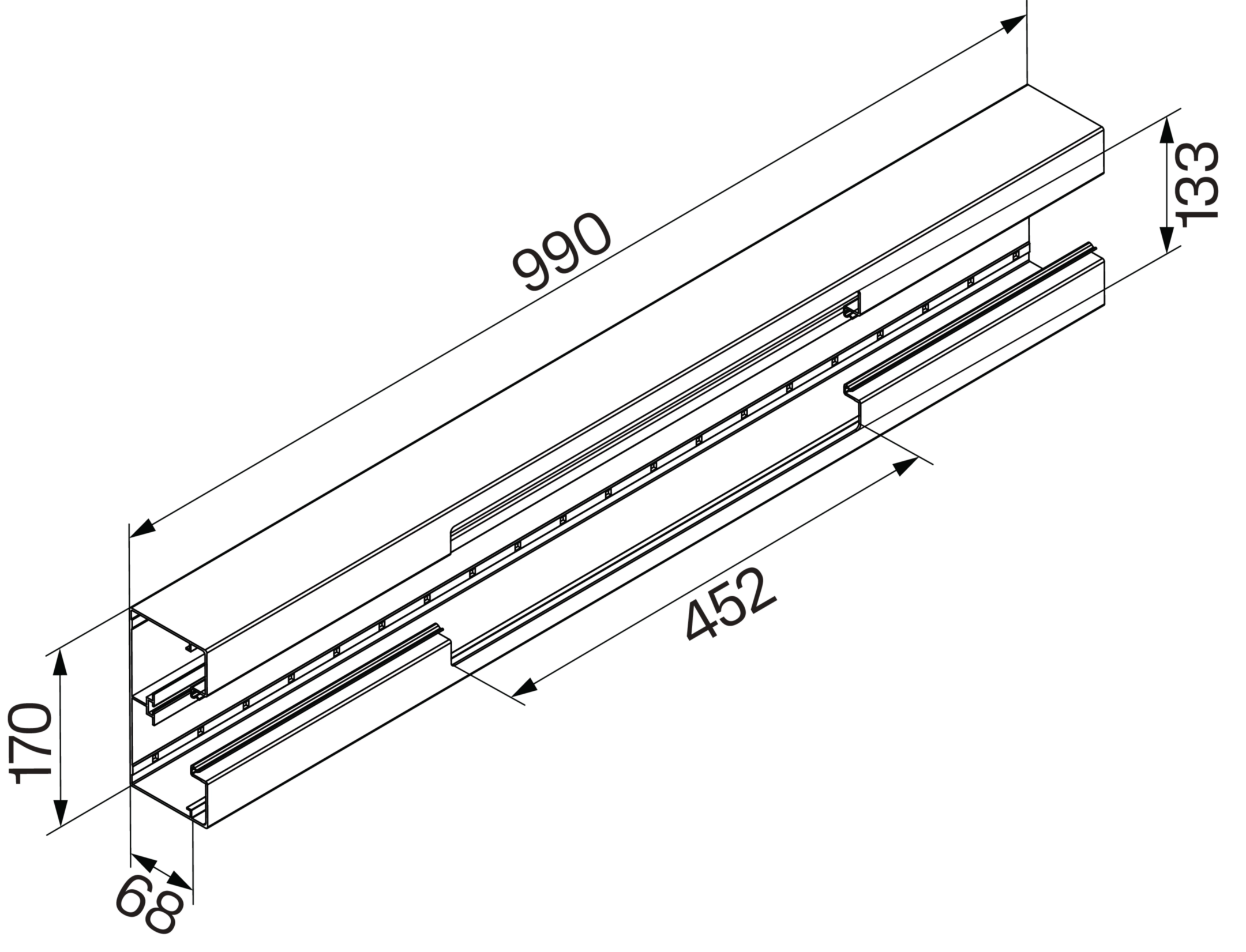 Brüstungskanal-Unterteil BRA85170 mit Ausschnitt für GKEV12, verkehrsweiß