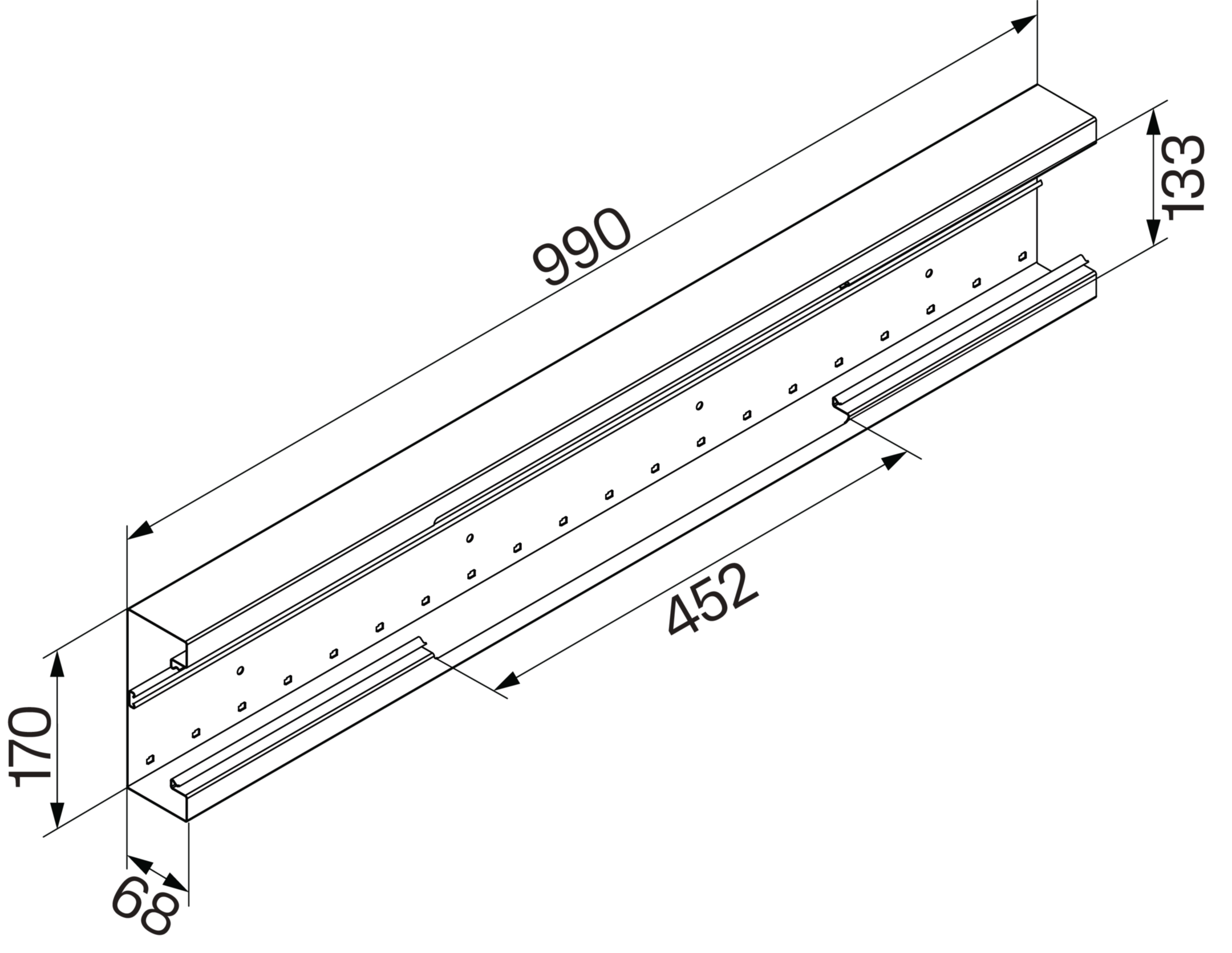 Brüstungskanal-Unterteil BRS65170B mit Ausschnitt für GKEV12, verkehrsweiß