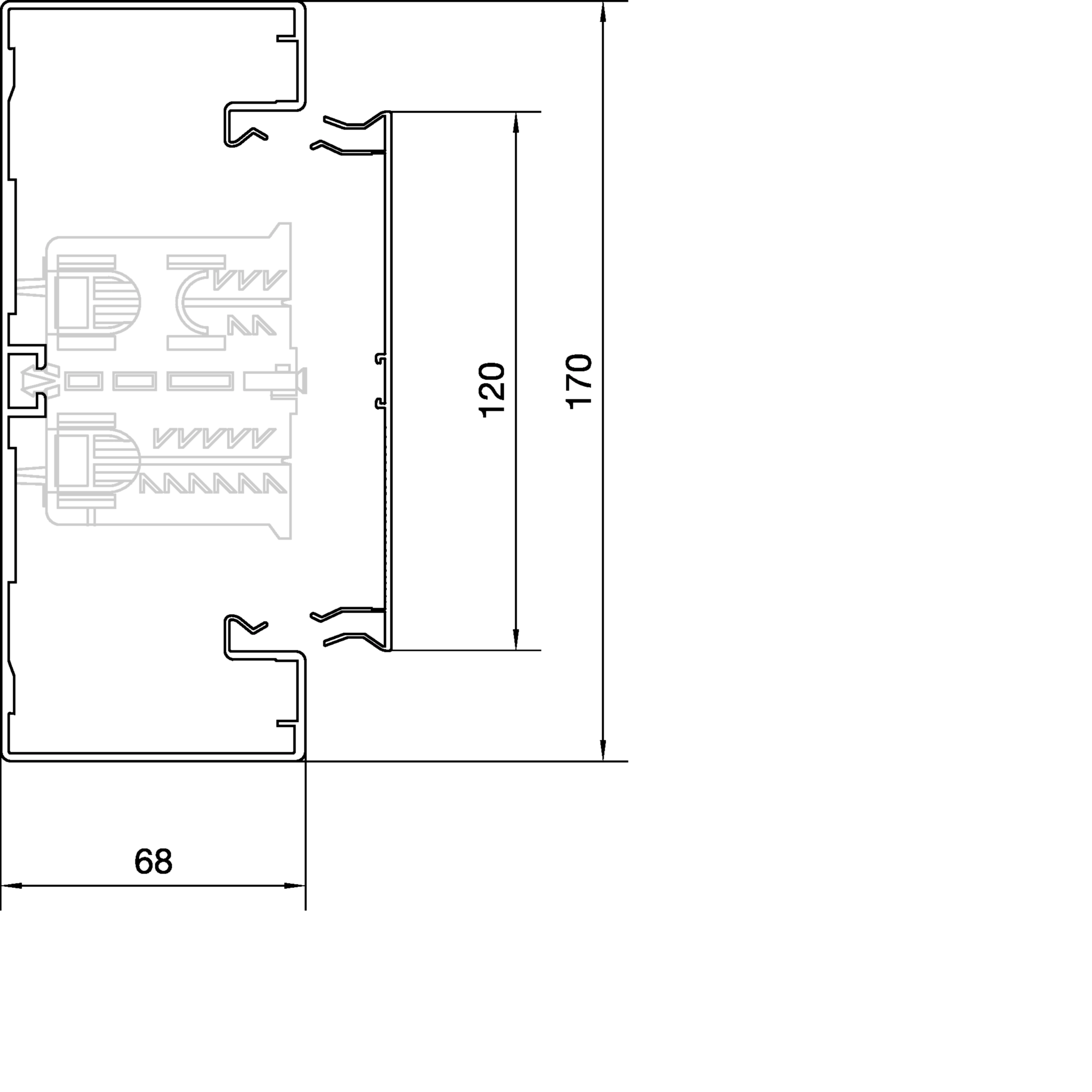 Brüstungskanal-Unterteil C-Profil BRA 68x170mm Oberteil 120mm Alu verkehrsweiß