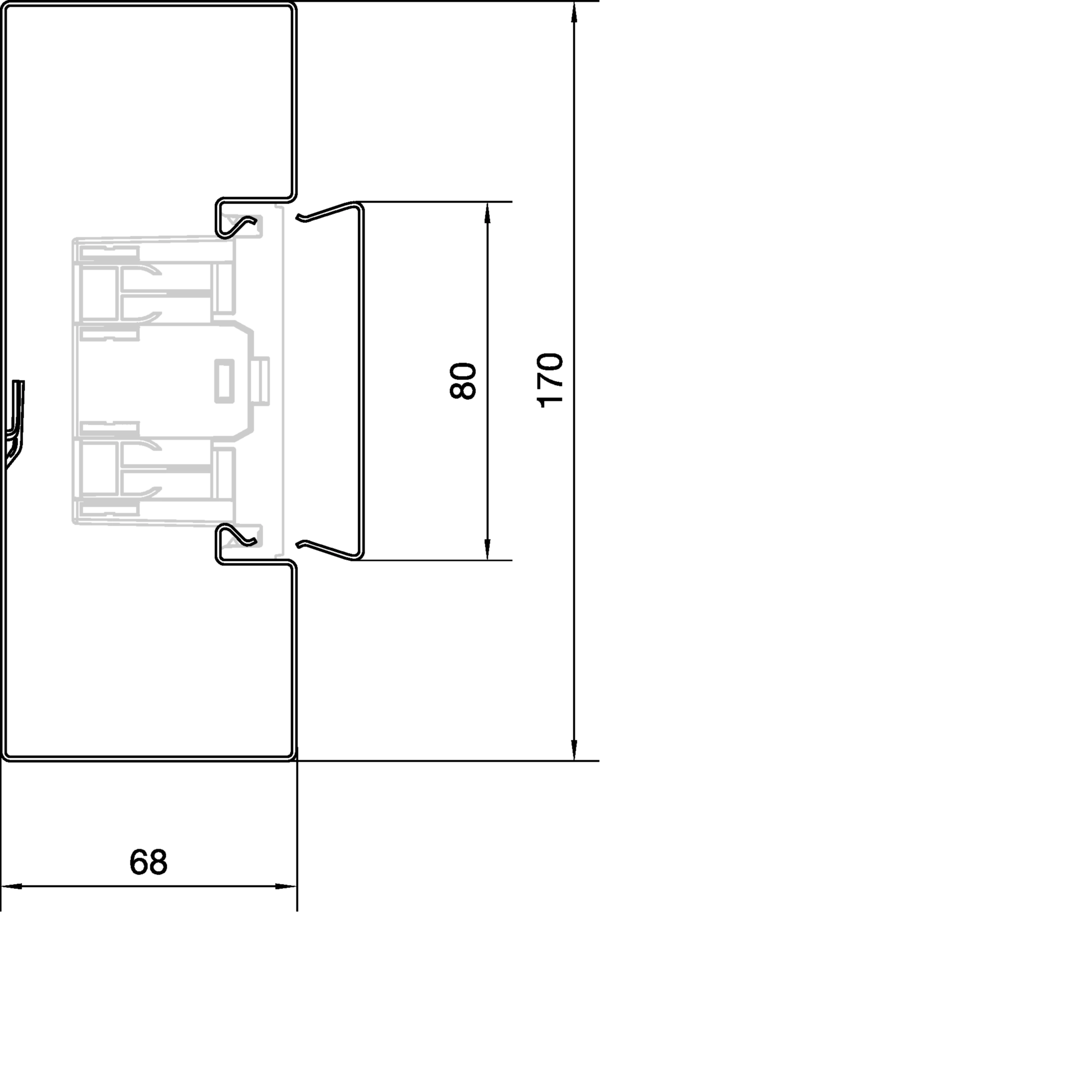 Brüstungskanal-Unterteil frontrastend Stahl BRS 70x170mm Oberteil 80mm verzinkt