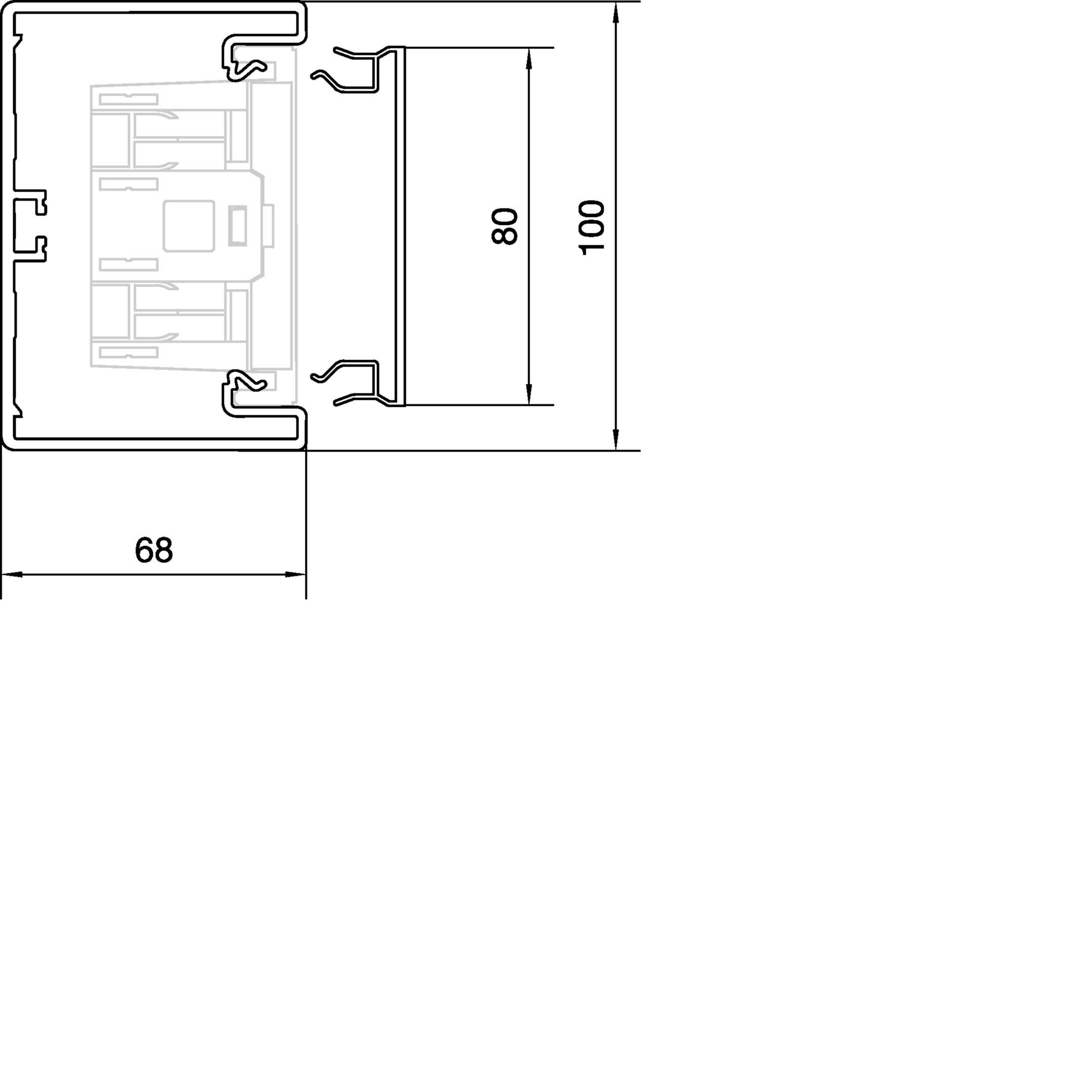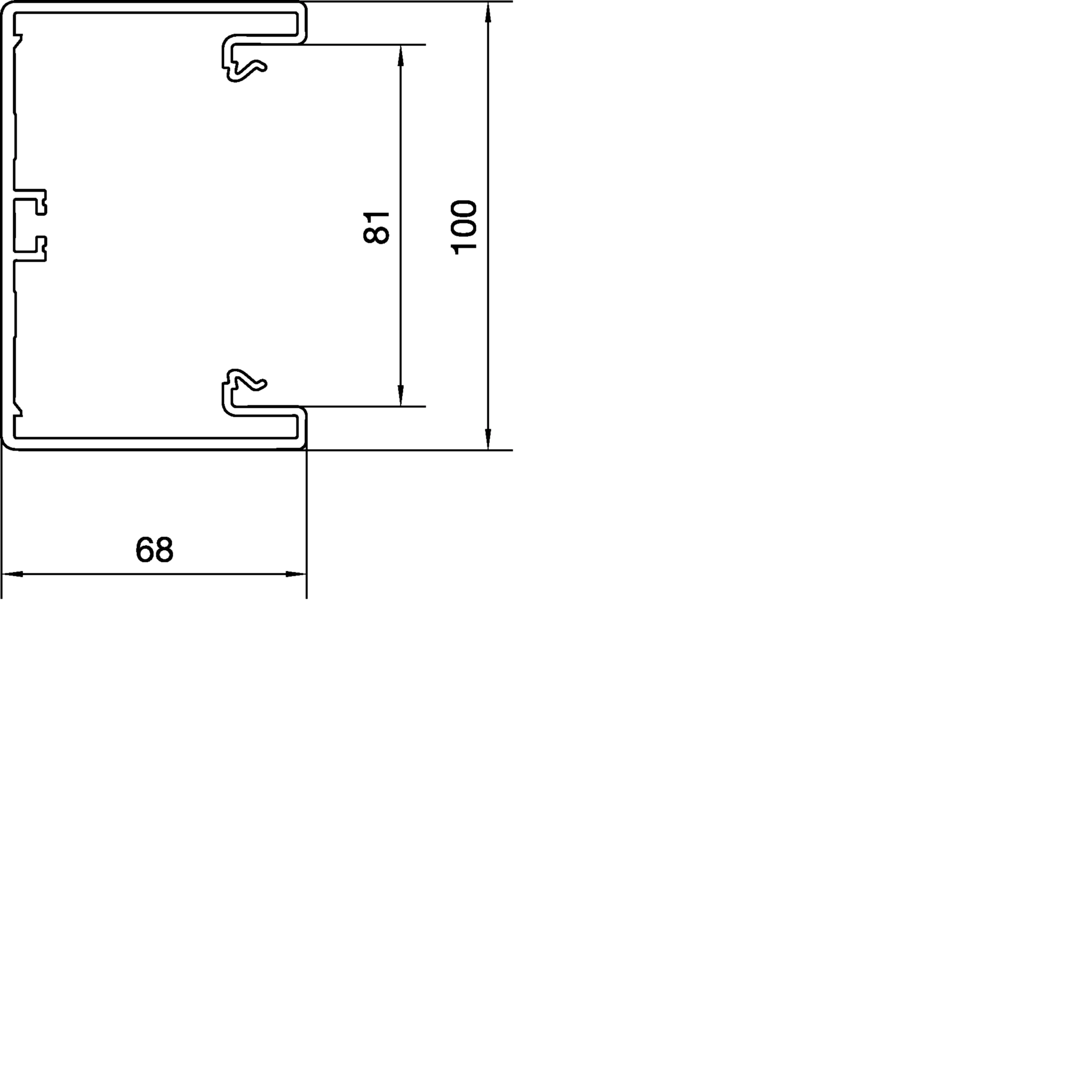 Brüstungskanal-Unterteil PVC frontrastend BR 68x100mm Oberteil 80mm in lichtgrau