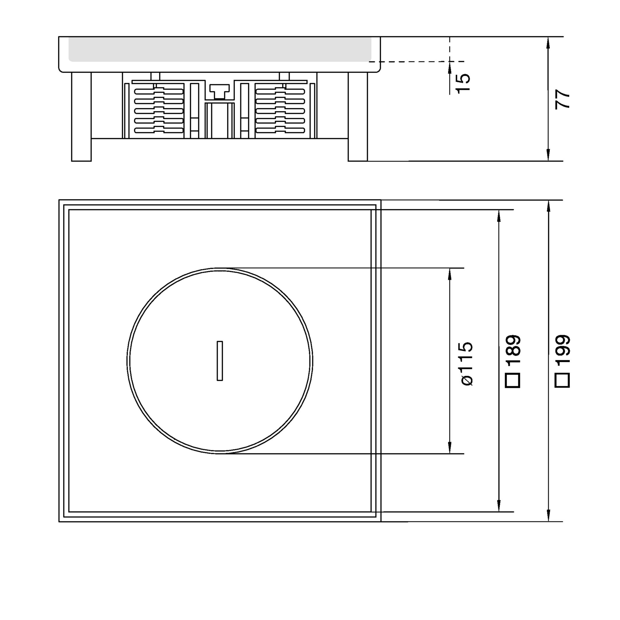 Nivellierbare Edelstahlkassette Q06 mit Tubus für 6x45er Module Belagstiefe 15mm