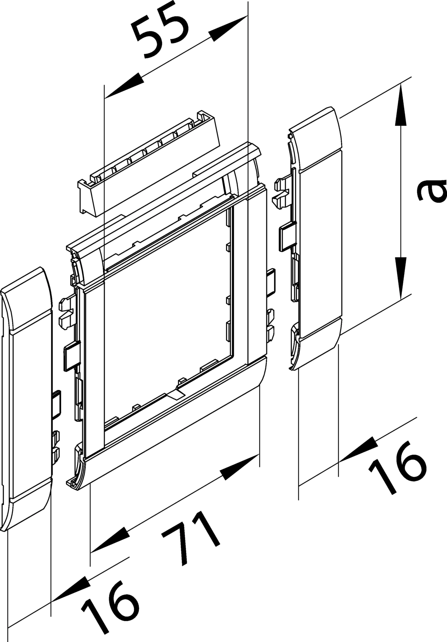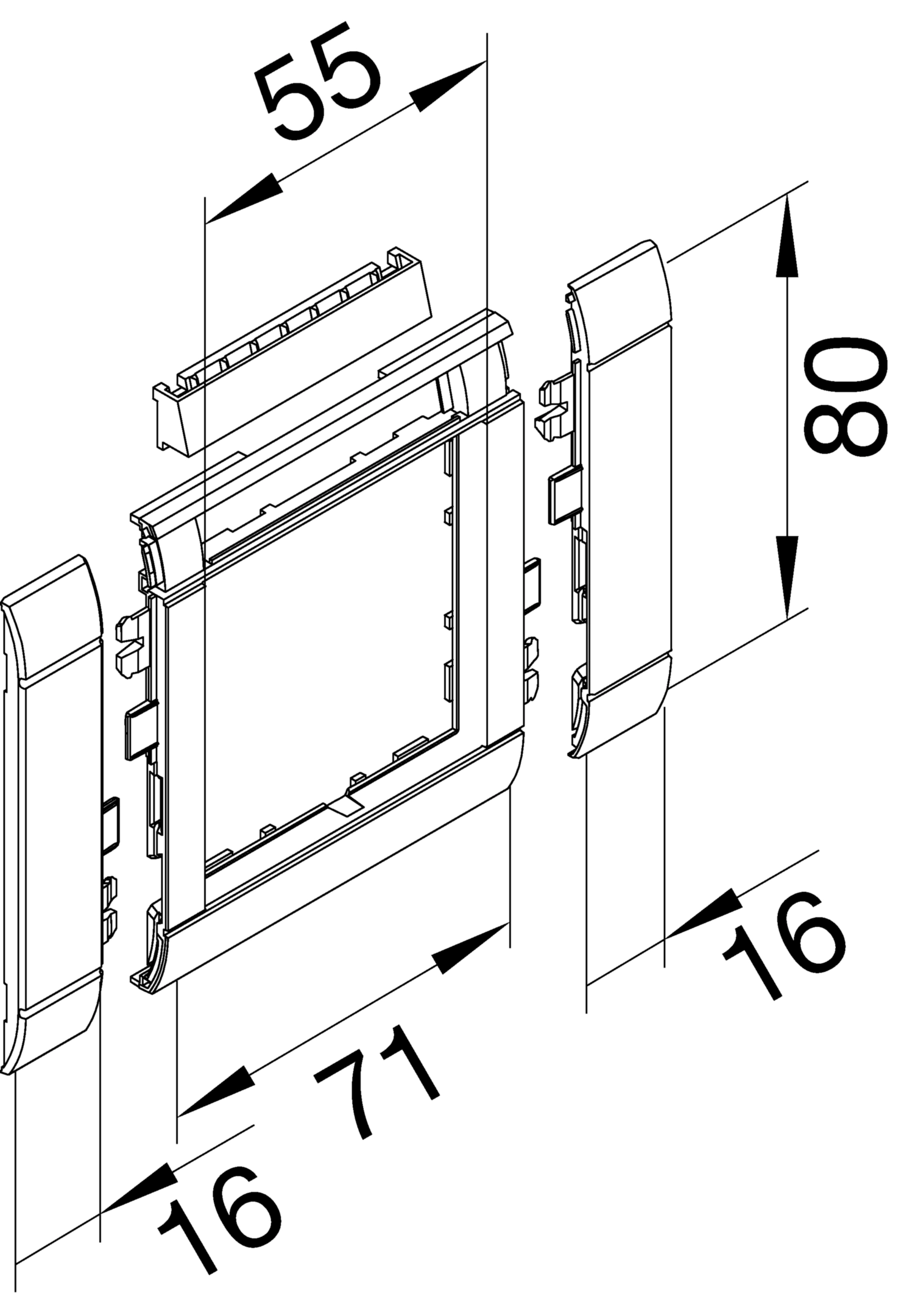 Rahmenblende modular, ZS 55, OT 80, hfr, Beschriftungsfeld, lichtgrau