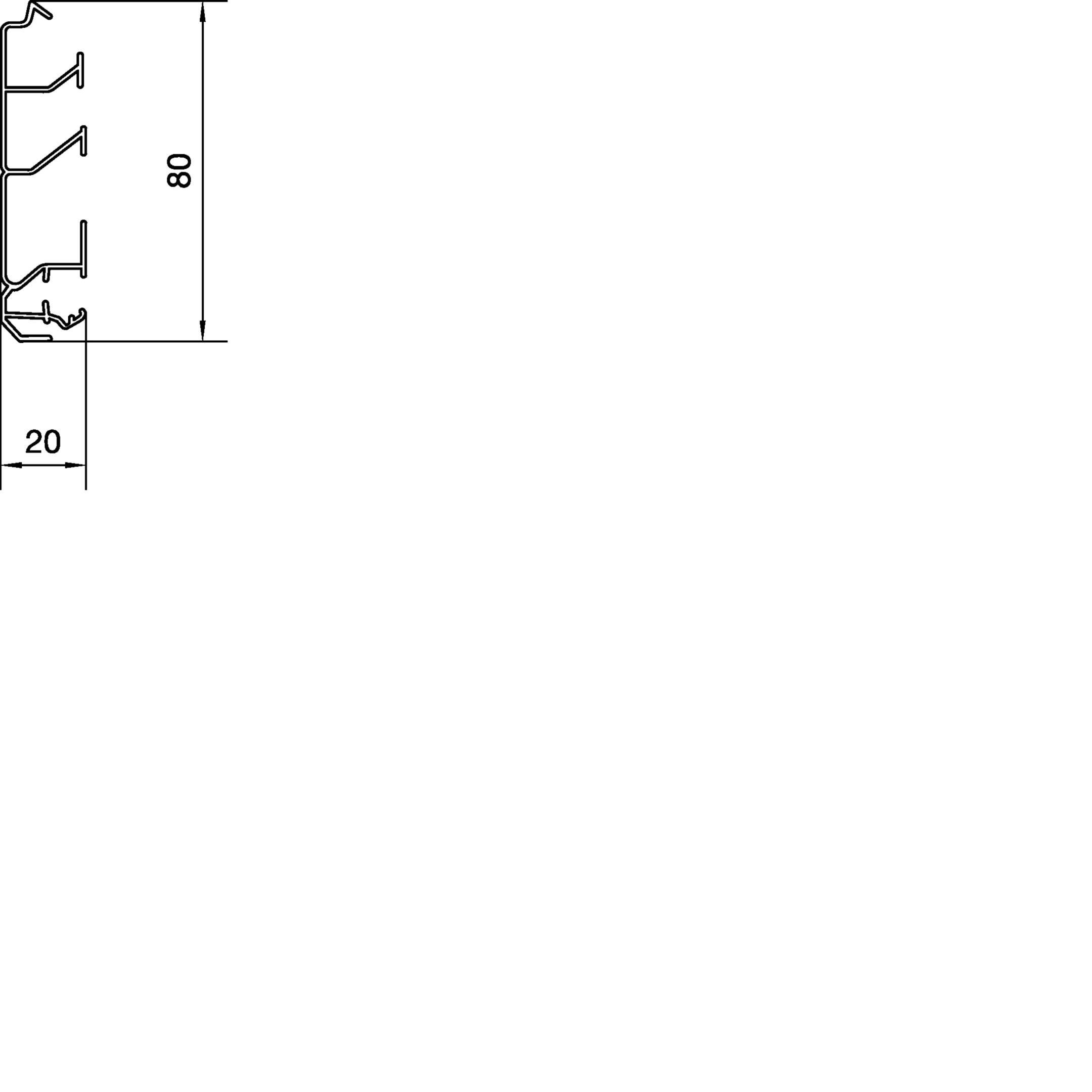 Sockelleistenkanal-Unterteil 3 Kammern aus Kunststoff halogenfrei zu SLH 20x80mm