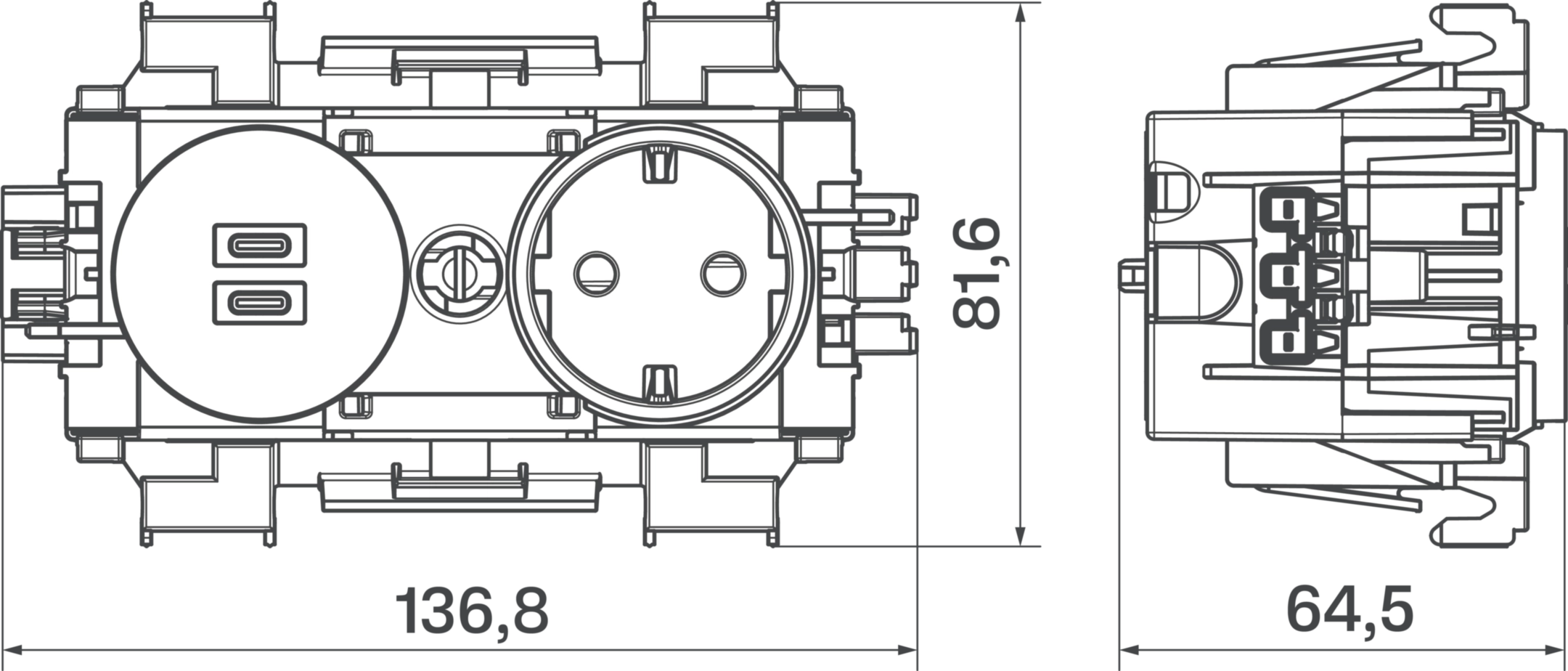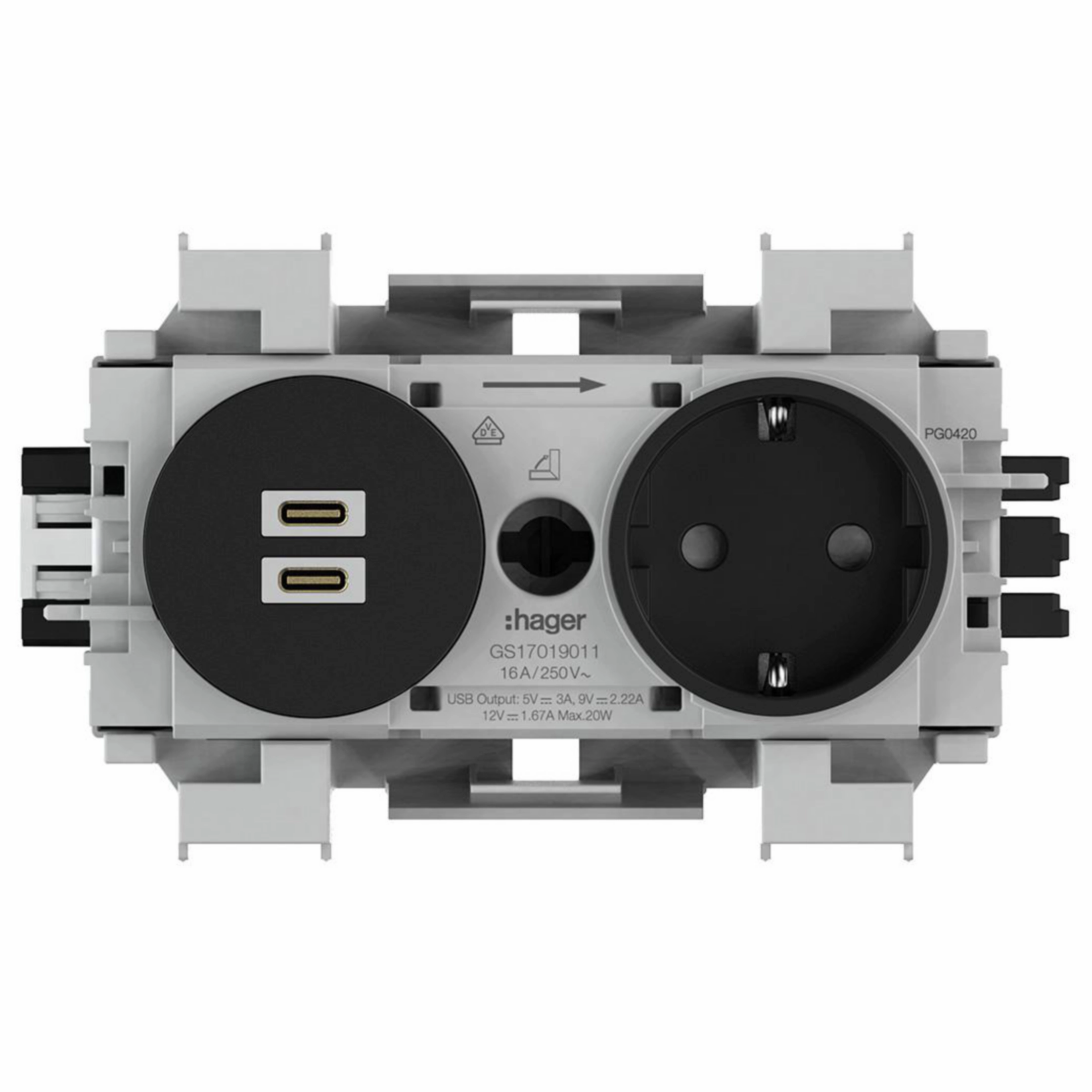 Steckdose 1-fach mit USB-Charger C + C PD 20W Winsta Frontrastend graphitschwarz