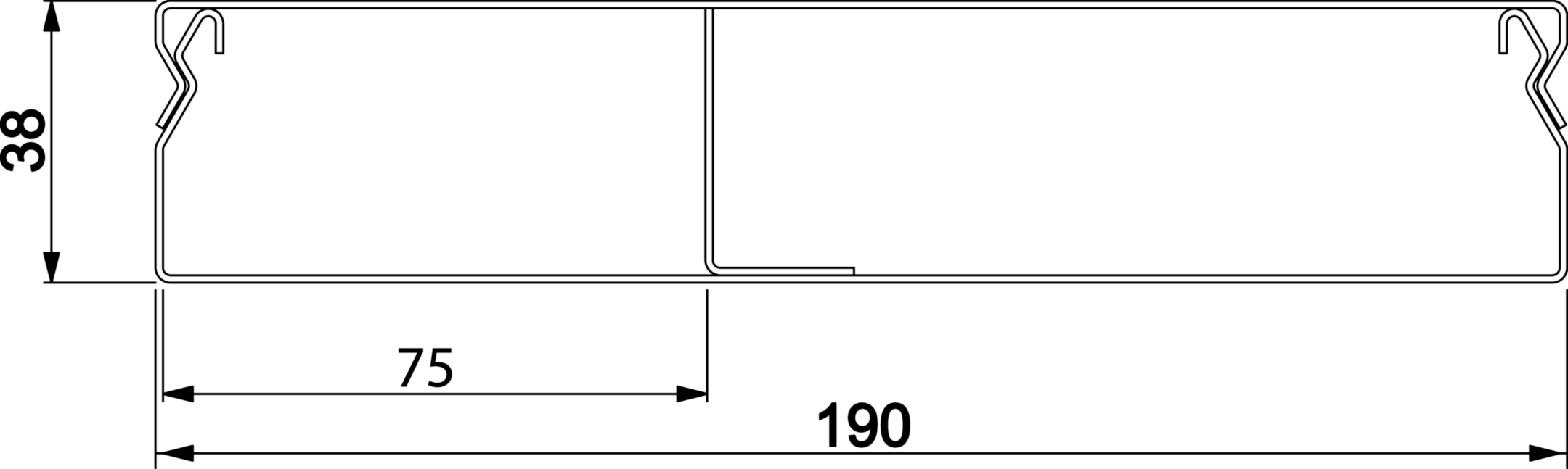 Unterflurkanal 2-zügig estrichüberdeckt aus Stahlblech UK 190x38mm