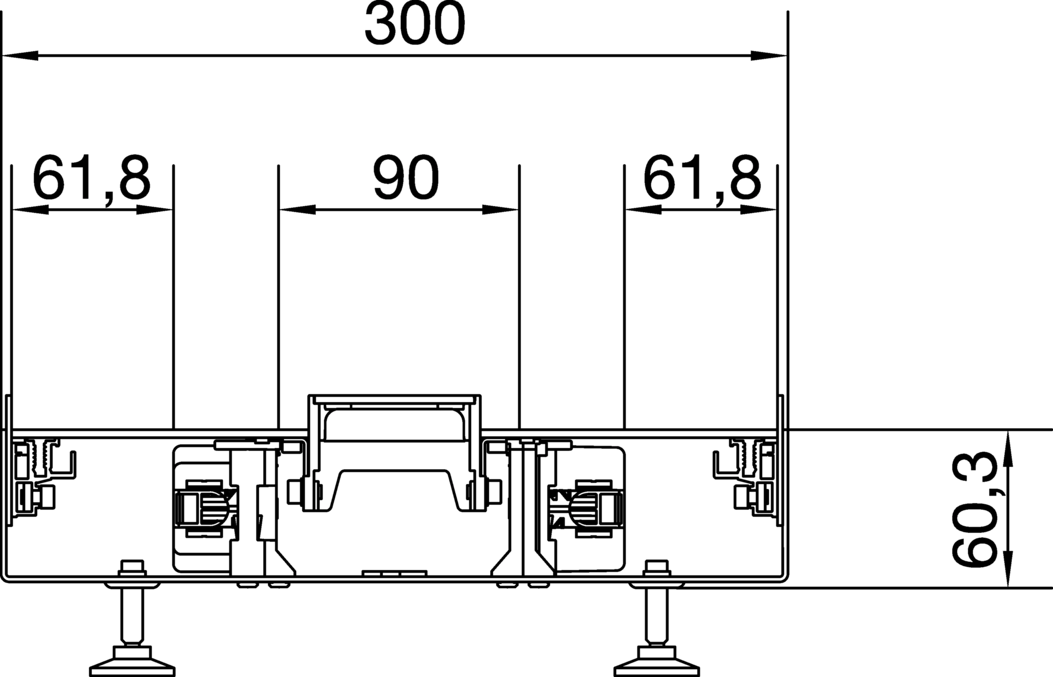 Unterteil für Bodenkanal geschlossen BKGD 300x60 mit Länge von 2m