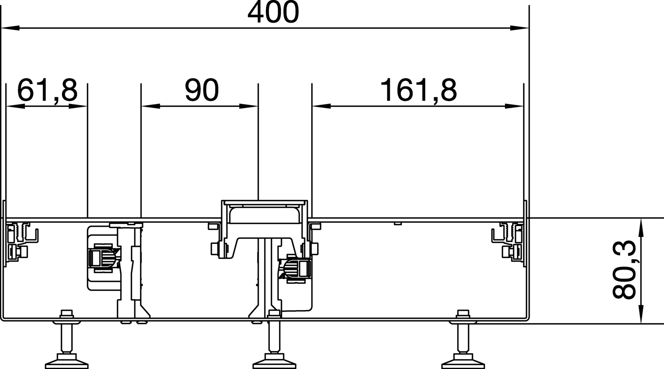 Unterteil für Bodenkanal geschlossen BKGD 400x80 mit Länge von 2m